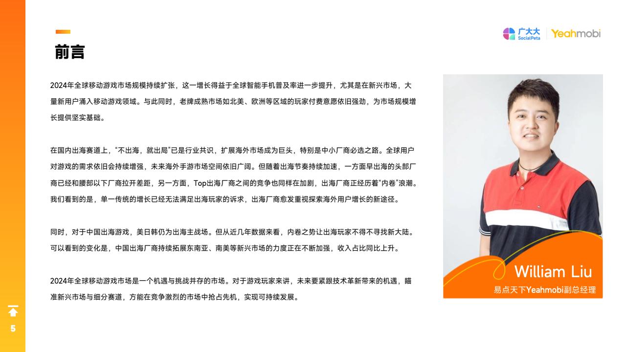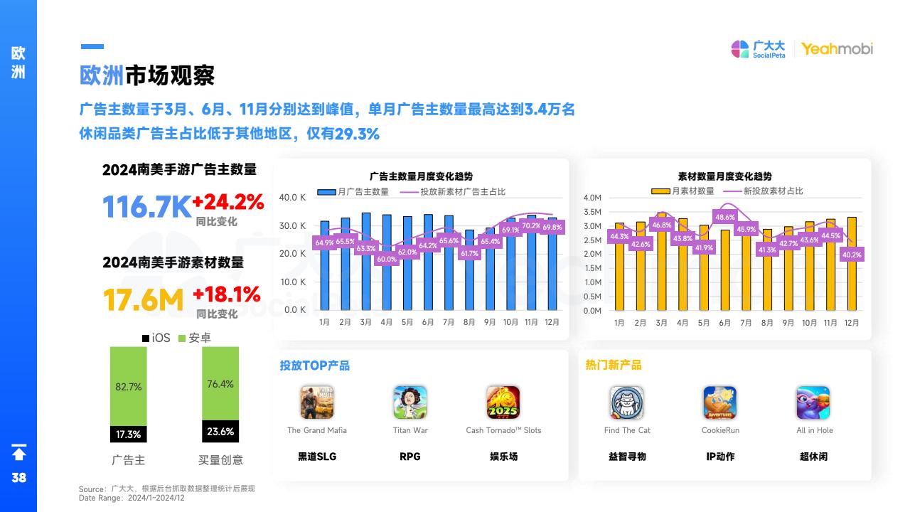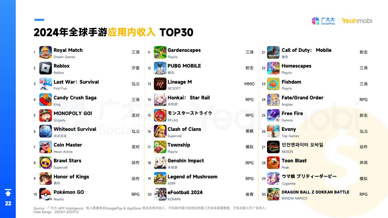 2024年全球移动游戏市场规模持续扩张,这一增长得益于全球智能手机普及率进一步提升,尤其是在新兴市场,大量新用户涌入移动游戏领域。与此同时,老牌成熟市场如北美、欧洲等区域的玩家付费意愿依旧日强劲,为市场规模增长提供坚实基础。