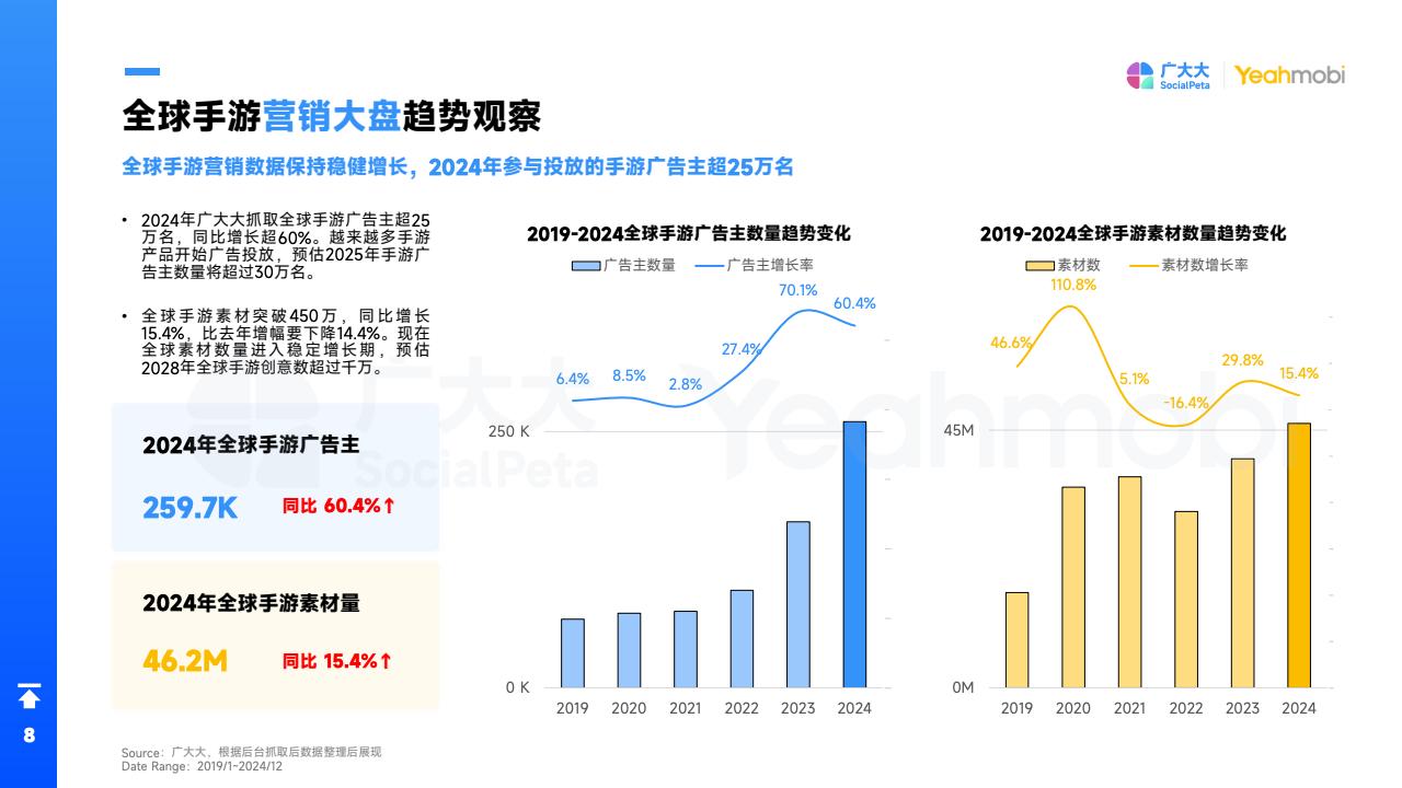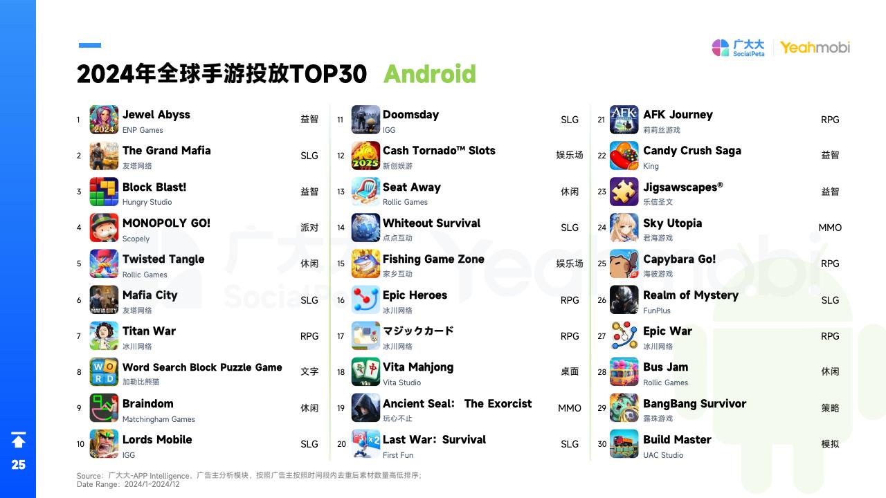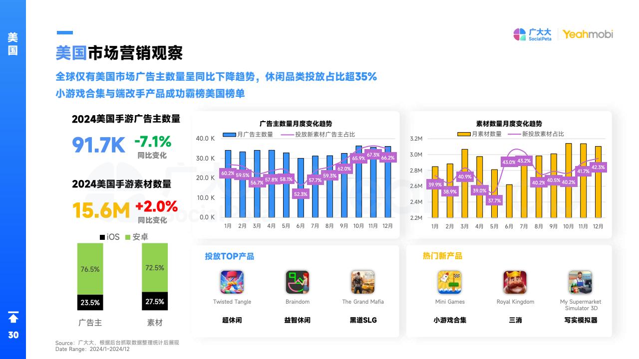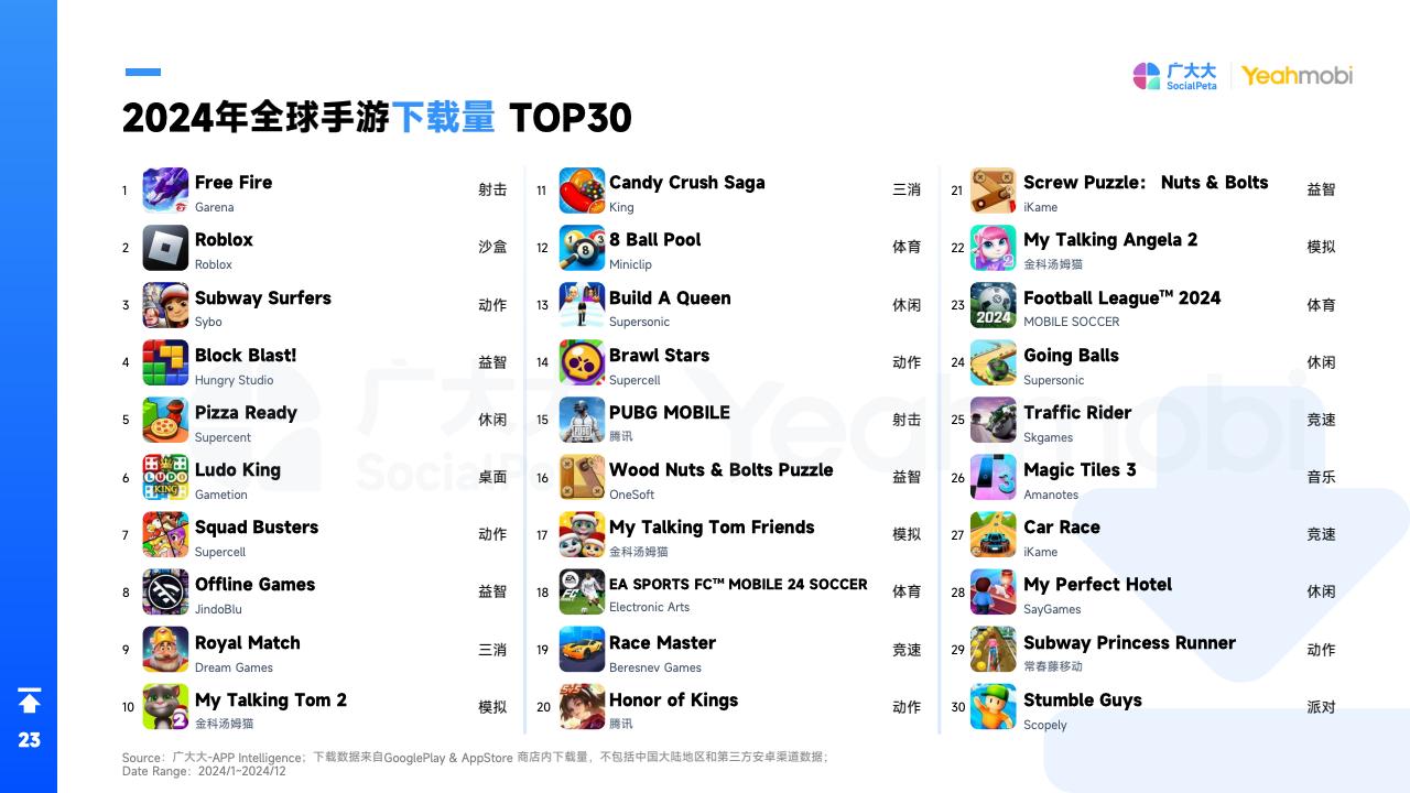 2024年全球移动游戏市场规模持续扩张,这一增长得益于全球智能手机普及率进一步提升,尤其是在新兴市场,大量新用户涌入移动游戏领域。与此同时,老牌成熟市场如北美、欧洲等区域的玩家付费意愿依旧日强劲,为市场规模增长提供坚实基础。