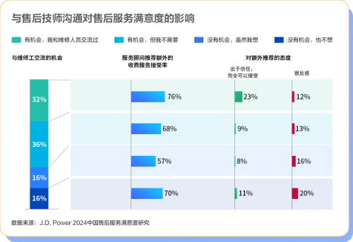 此外,售后技师若能有效地与客户进行沟通,深入理解客户的需求,不仅能显著提升客户满意度,还能为未来客户的转介绍打下良好基础。有研究表明,与售后技师交流过的客户,对于额外推荐的接受度更高,达到了23%。信任是建立在沟通的基础之上,随着客户对透明度要求的提升,汽车经销商更应在售后沟通上“多下功夫”,致力于构建与客户之间的双向互信关系。