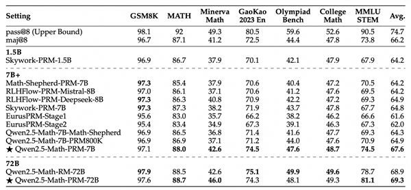 快科技1月16日消息,今日,阿里云通义开源全新的数学推理过程奖励模型Qwen2.5-Math-PRM,72B及7B尺寸模型性能均大幅超越同类开源过程奖励模型。