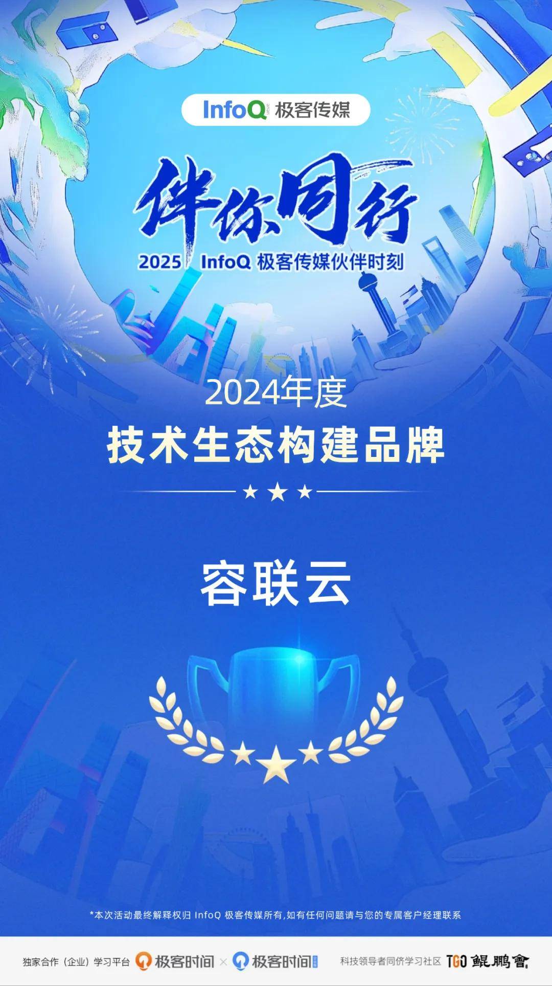 InfoQ作为全球知名的科技媒体,其评选的「2024年度技术生态构建品牌」奖项含金量极高。容联云获此荣誉,意味着在构建AI技术生态方面取得了显著成就。