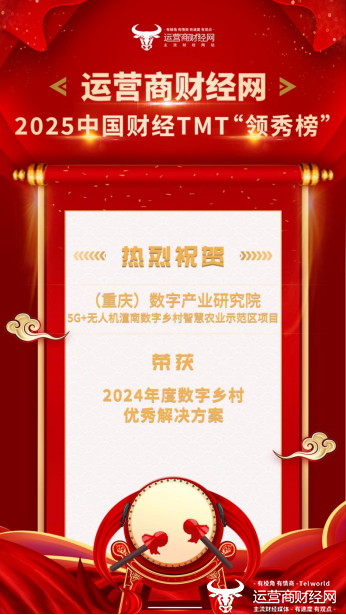 盛典期间,运营商财经网正式公布了年度评选获奖名单。其中,(重庆)数字产业研究院的5G+无人机潼南数字乡村智慧农业示范区项目荣获“2024年度数字乡村优秀解决方案”奖项!