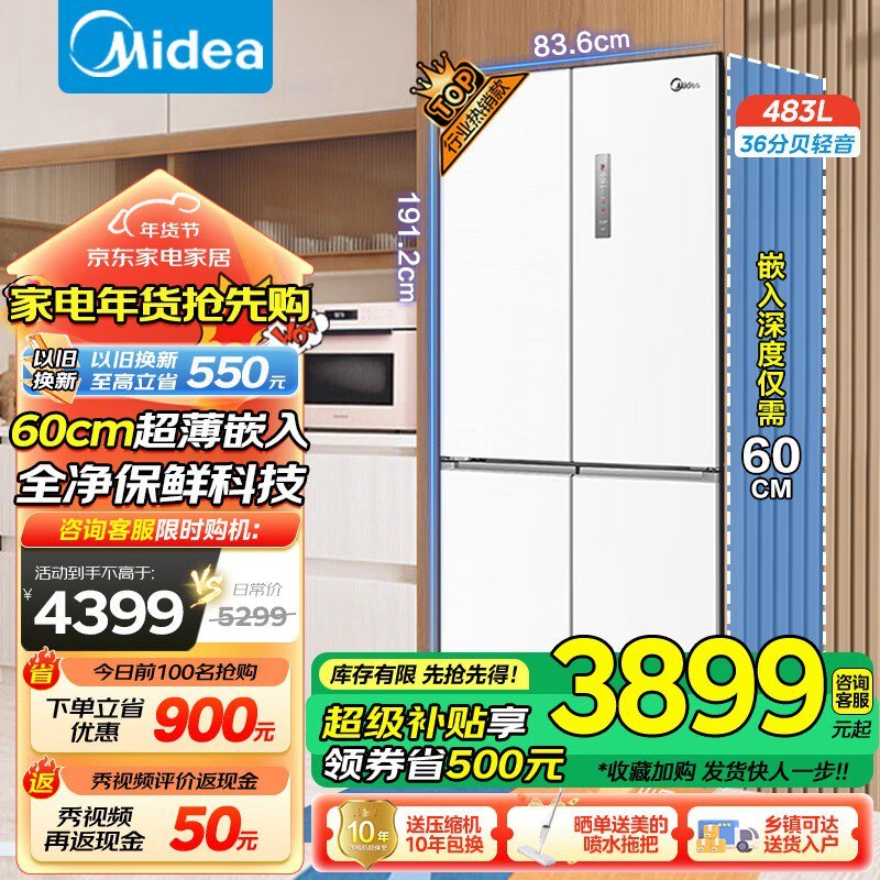 美的超薄系列冰箱史低价3899元!