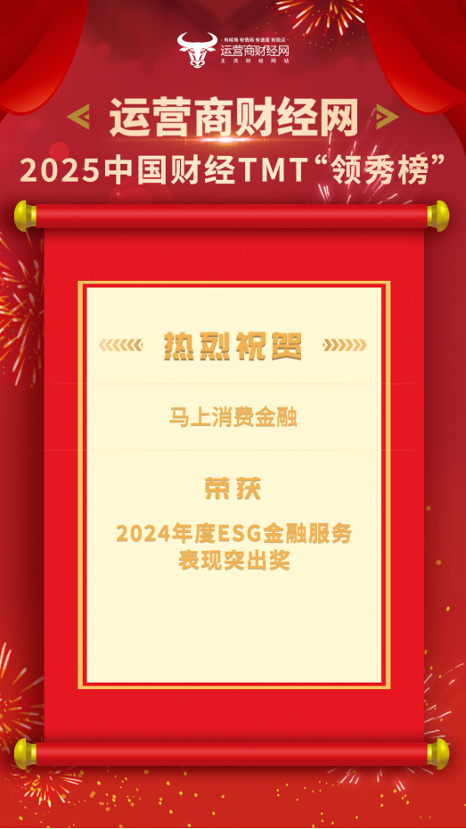 在1月16日,由运营商财经网举办的2025中国财经TMT“领秀榜”盛典上,马上消费金融荣获“2024年度ESG金融服务表现突出奖”奖项。