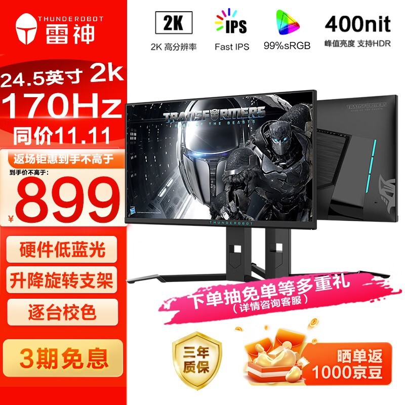 雷神LQ25F165L 黑武士显示器只需869元!
