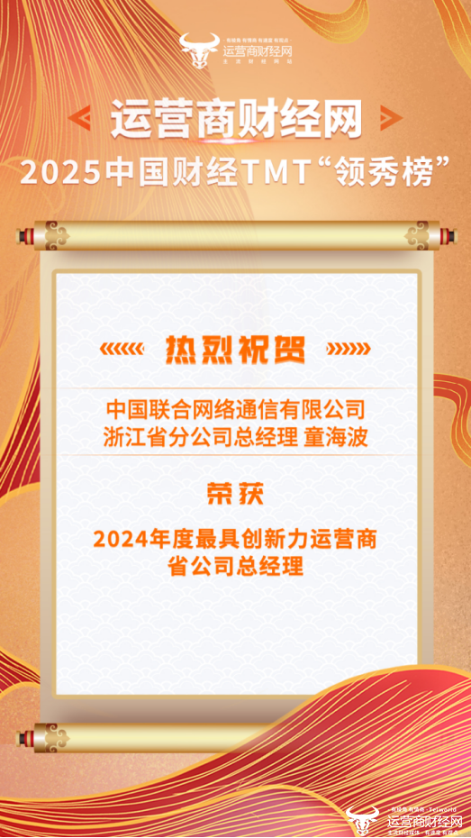 在盛典上,运营商财经网正式宣布“2024年度最具创新力运营商省公司总经理”获奖名单,浙江联通总经理童海波榜上有名。他于2024年10月上任,作为一名早年就在浙江联通积累了多年工作经验的老员工,这次回归也为他提供了一个大展身手的好机会。