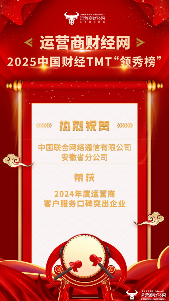 其中,中国联合网络通信有限公司安徽省分公司以出色的表现,荣获了“2024年度运营商客户服务口碑突出企业”这一奖项。