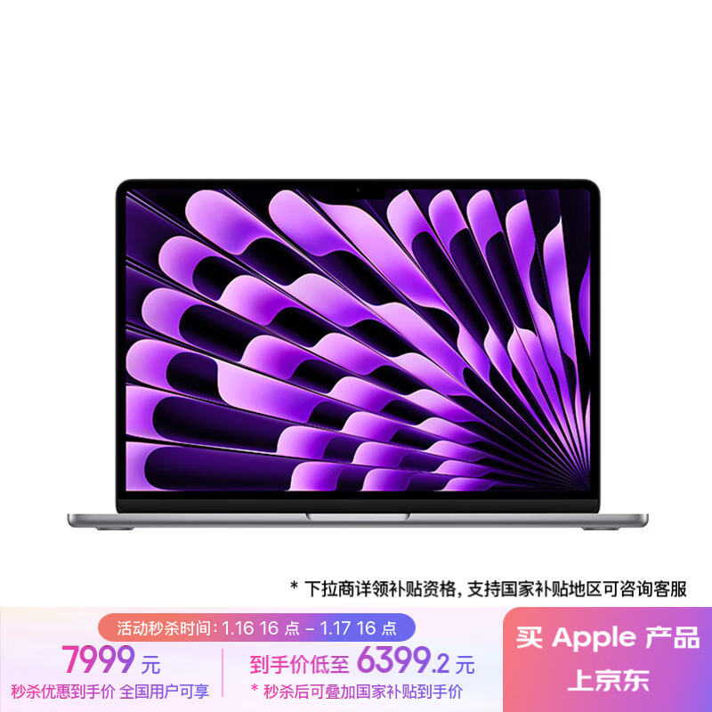 新款MacBook Air国补价6399元 13英寸M3芯片电脑仅售6399.2