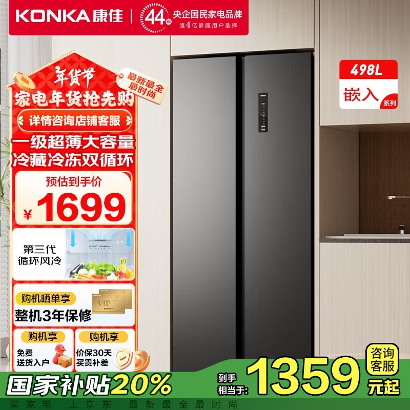康佳双开门冰箱1146元!8分钟净味除菌