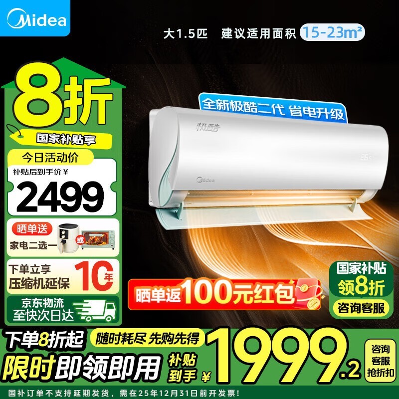美的极酷二代新一级能效空调挂机8折优惠1889元