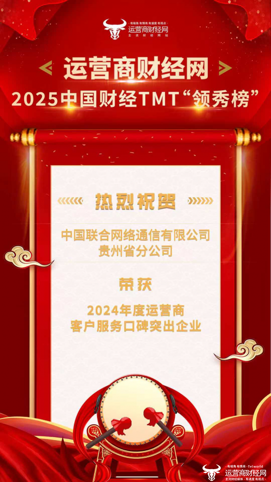 盛典的现场,运营商财经网正式公布了获奖企业的名单。其中,中国联合网络通信有限公司贵州省分公司凭借出色的表现,荣获了“2024年度运营商客户服务口碑突出企业”奖项。