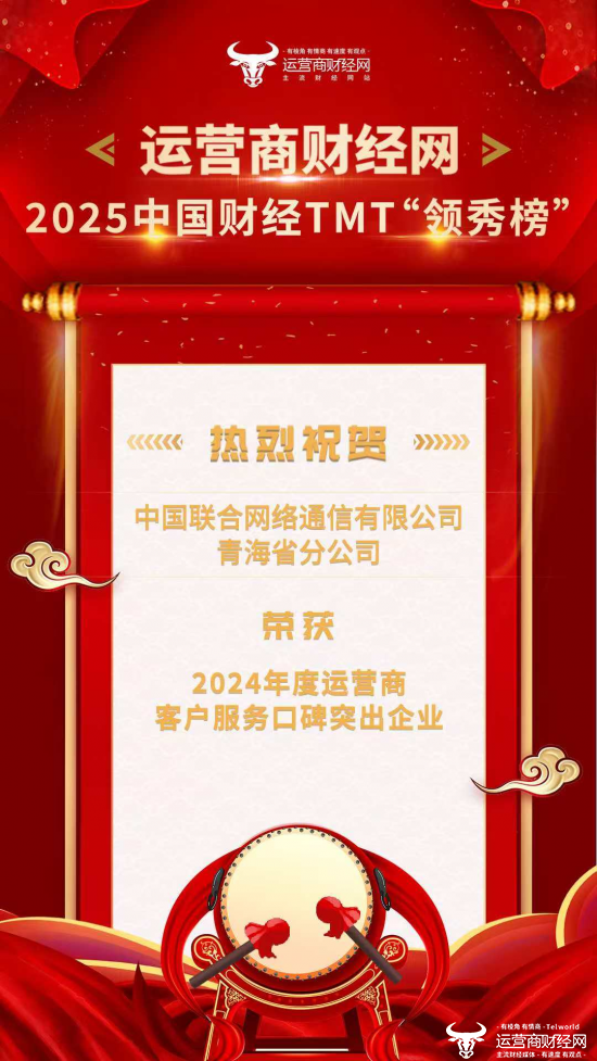 由知名财经媒体运营商财经网举办的2025中国财经TMT“领秀榜”盛典于1月16日盛大召开。在此次盛典中,经过严格评选与激烈角逐,中国联合网络通信有限公司青海省分公司以较高票数,荣获了“2024年度运营商客户服务口碑突出企业”奖项。