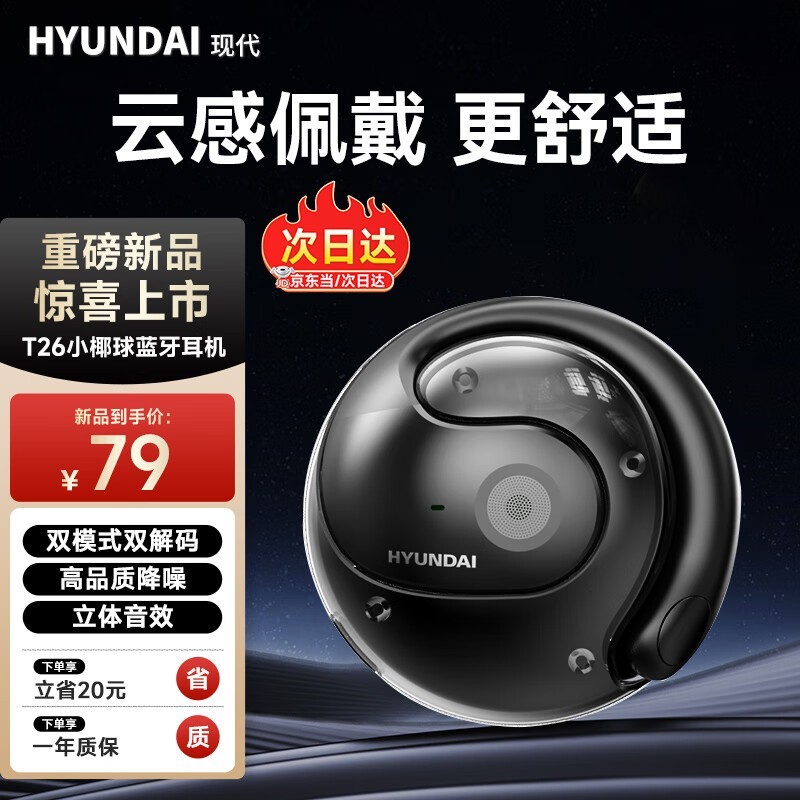 现代HY-T26无线耳机到手价52.5元!骨传导概念设计