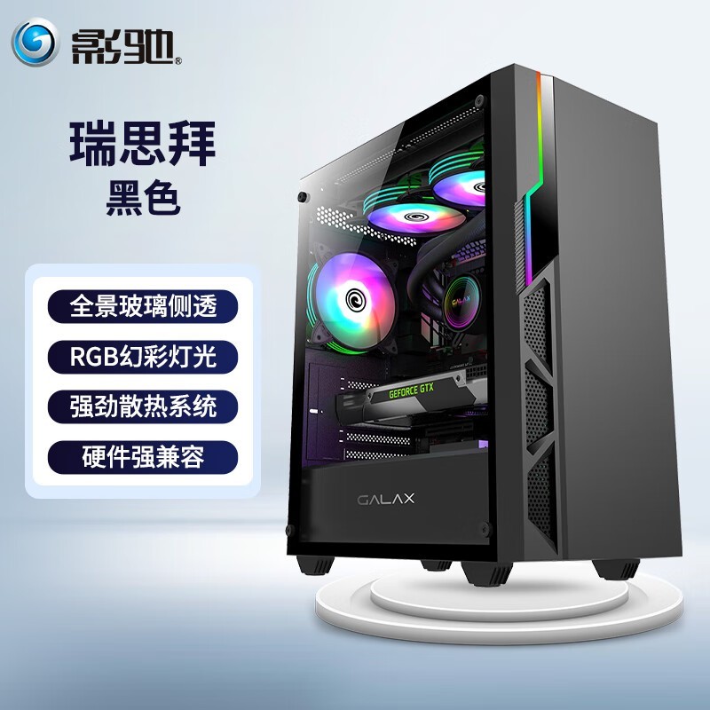 影驰瑞思拜全景玻璃侧透电脑主机箱 限时优惠129元