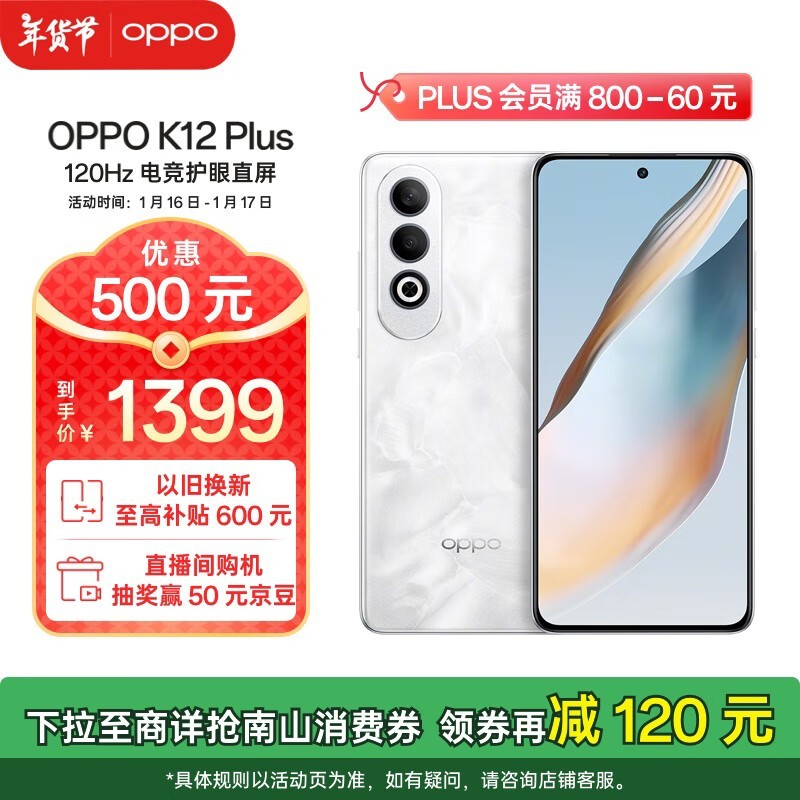 满减来袭!OPPO K12 Plus 5G手机直降460元
