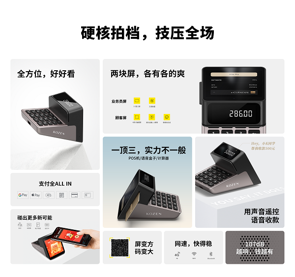 在用户体验上,NOVA 系列同样不遗余力。其小巧精致的设计,使其完美适应各种商业环境。同时,支付反馈全面升级,108分贝的清晰提示音,无惧嘈杂环境,确保每一笔交易都准确无误;语音支付配合生动有趣的emoji UI设计互动,显著优化客户体验,让支付更愉悦、轻松。