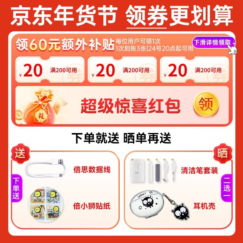 倍思M2s Pro主动降噪蓝牙耳机 限时特惠173元