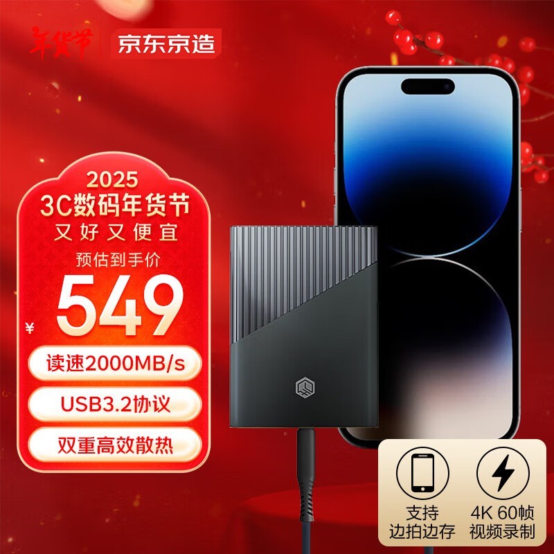 性价比之选!京东京造1TB移动固态硬盘仅549元