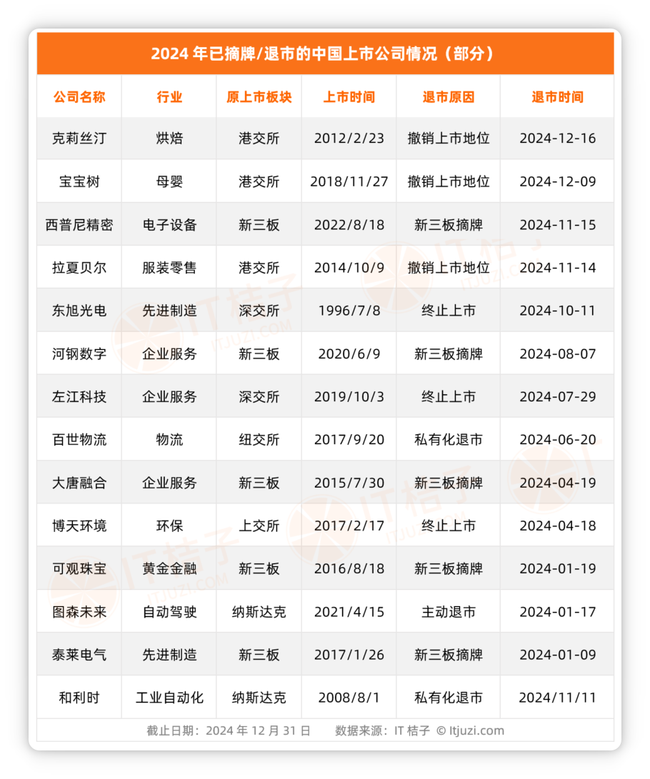 IT桔子注意到,有3家中国零售消费企业在2024年退市,而且都是从港交所退,值得关注。