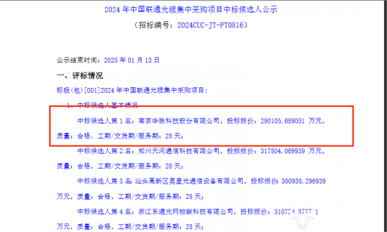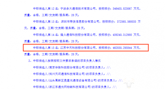 不到一个月时间,中标候选人名单就火热出炉。公告显示,本次共有15名中标候选人,他们分别是:华脉科技、郑州天河通信、奥星光、东通光网、江苏通光电子、天津富通、江苏俊知、普天线缆、江苏永鼎、苏州胜信光电、宏安集团、宁波余大通信、特发信息、烽火、中天科技。