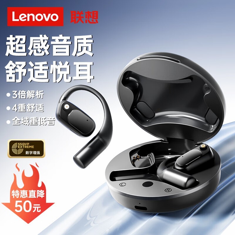联想LP72黑蓝牙耳机特价139元 采用骨传导技术更安全