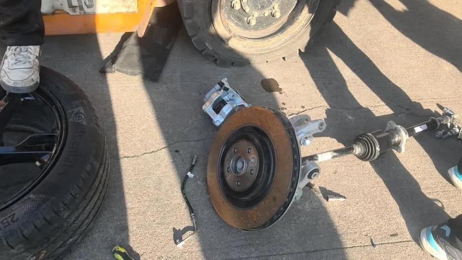梁滔数了数,他需要17个配件。找新配件几乎不可能,他就选择在线上渠道收拆车件。除了轮胎联系到轮胎经销商、钢圈联系到上海一家极越授权售后中心调货外,剩下15个配件都是梁滔自己联系到的拆车件。他带着修车师傅,先后从苏州驱车几百公里到金华和上海两地拆件,折腾了半个月,才终于把需要的配件凑齐。