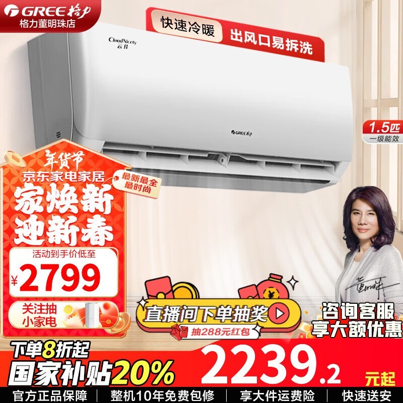 格力 KFR-35GW/NhGc1B一级能效空调2169元 一级能效节能更省电