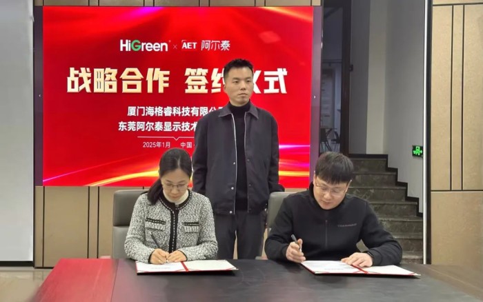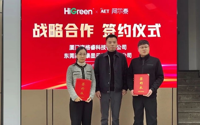 通过“HiGreen海格睿”和“AET阿尔泰”的品牌战略合作,依托双方资源优势的互通融合,共同开拓LED商显市场,推动商显应用智能化升级。