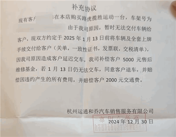 后续,4S店和她协商,若1月13日仍无法交车,4S店同意退车,并赔偿因违约产生的所有费用,以及客户2000元的交通费。