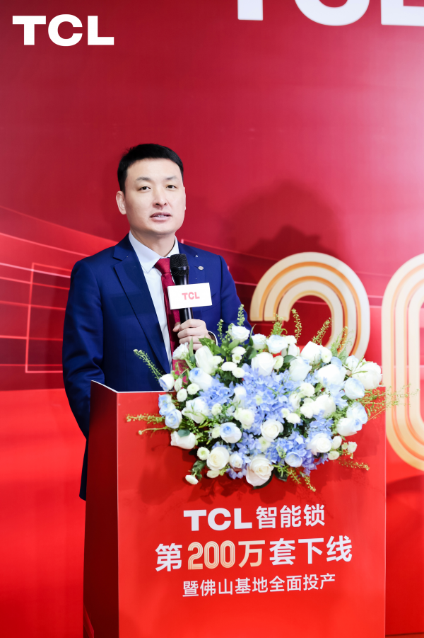 在下线剪彩仪式环节,TCL实业中国区总裁卢春水先生对第200万台智能锁下线仪式进行了致辞,卢春水表示,今天大家共同见证 TCL 智能锁在中国市场第 200 万套下线这振奋人心的时刻。这个成绩离不开大家的努力和付出。同时也感谢这 200 万家庭对TCL产品的信任。这不仅是数量突破,更是对品质与承诺的坚守。2025 年将以此为新起点,还会有更多、更好的产品来满足消费者的体验。未来TCL也会以更加饱满的热情和昂扬的斗志坻坜前行,为提速智能锁发展创造更多的辉煌!