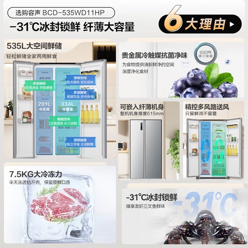 容声 BCD-535WD11HP 水晶门冰箱只要1400多
