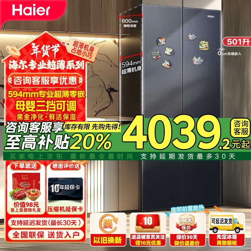 海尔 Haier 年度新品冰箱优惠仅3839元!