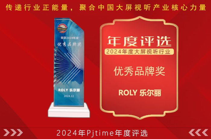 2024年,ROLY在行业宏观需求低谷中,通过供给侧主动作为、需求侧下沉求新,将投影光影创意应用带入到更多空间之中,创造了市场成长的新成绩。作为民族高端投影的代表者之一,ROLY荣获PJTIME.COM大屏盛典“2024年度优秀品牌奖”大奖实至名归!