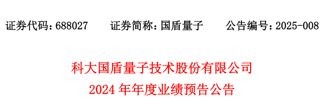 C114讯 1月18日消息(南山)国盾量子昨日晚间发布了2024年业绩预告。