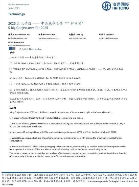 据报道,海通国际证券公司近日发布研究报告,提出2025年五大猜想。