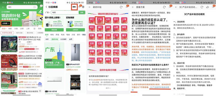 每个省市的具体政策细则 ,大家可以在淘宝搜索「国补」点击「规则」选择你所在的区域,拉到页面的最下方,有专门针对 3C 产品的补贴规则。