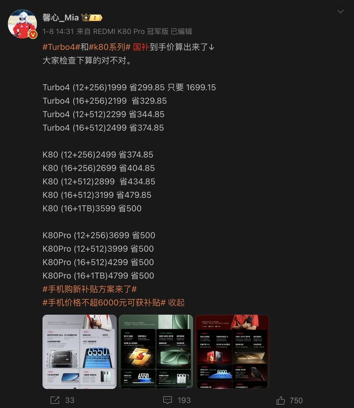 REDMI 的产品经理,甚至还贴心地帮大家算好了补贴之后的价格。当然,在国补和平台补贴政策下 小米 15 | vivo X200 | OPPO Find X8 这些旗舰机型的入门版,也非常值得关注。