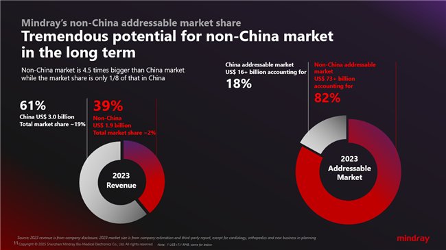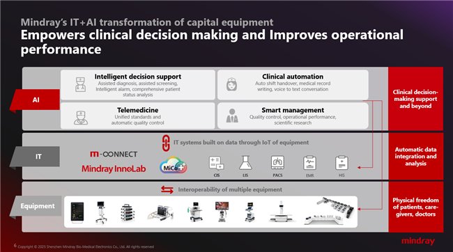当前,围绕“数智化创新”、“拓展耗材业务”以及“加速全球化”三大公司中长期发展驱动力,迈瑞医疗正持续以锐意进取的创新精神和赋能临床的解决方案,真正践行“普及高端科技,让更多人分享优质生命关怀”的使命,为全球医疗行业的高质量发展贡献迈瑞方案。