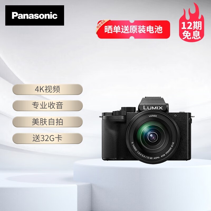 Panasonic G100DM微单相机 专业级vlog神器 活动价2798元
