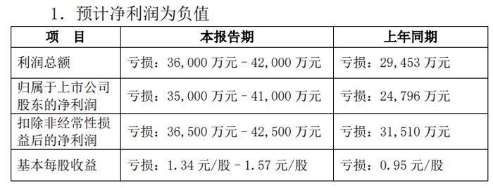1月18日,中光学集团股份有限公司发布2024 年度业绩预告,预计 2024 年度实现利润总额亏损36,000 万元–42,000 万元;归母净利润亏损35,000 万元–41,000 万元;预计 2024 年度扣非净利润亏损36,500 万元–42,500 万元。基本每股收益亏损1.34 元/股–1.57 元/股。