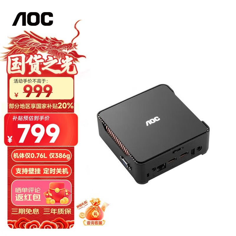 AOC MOSS M3迷你台式机仅售743元 限时优惠!