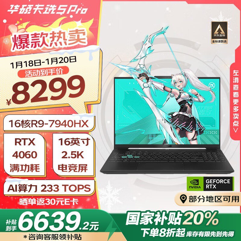 能硬战能轻便的游戏本!华硕ASUS天选5 Pro优惠价6597元