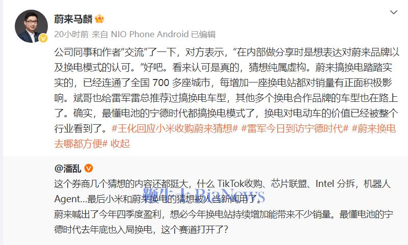 蔚来马麟回应「券商收购猜想」:纯属虚构