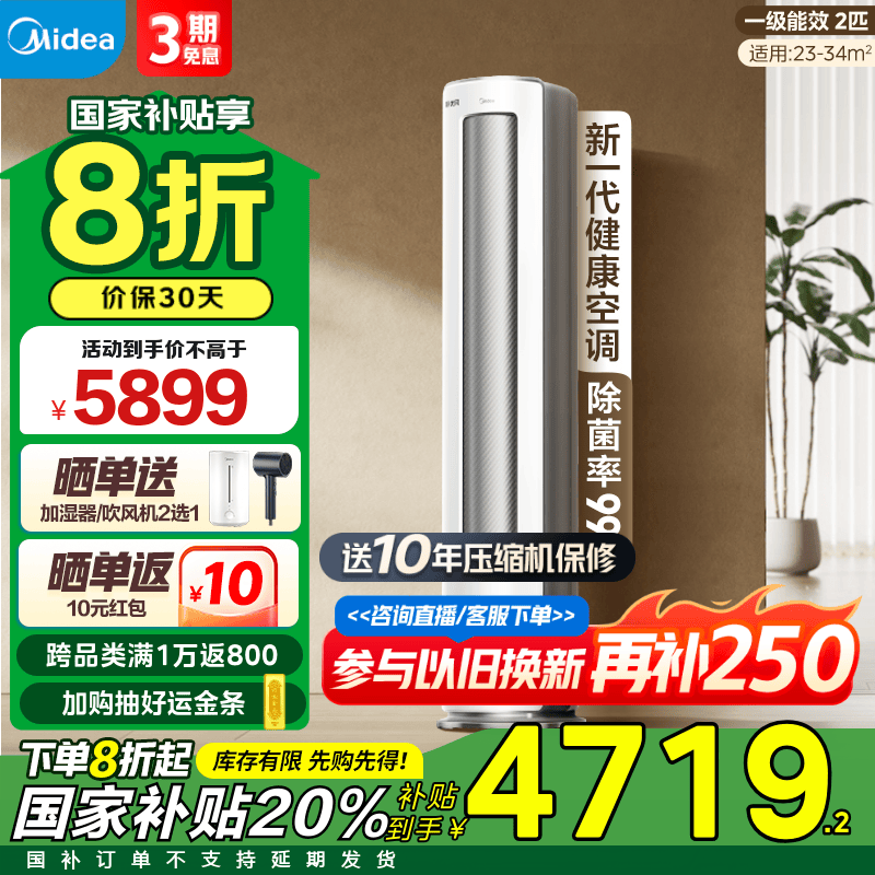 美的静优风 KFR-51L/N8HY1-1 立柜式空调 2匹 新一级能效