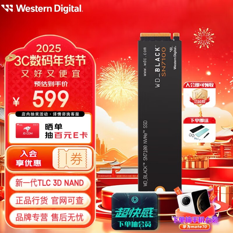 西部数据1TB固态硬盘484元秒杀