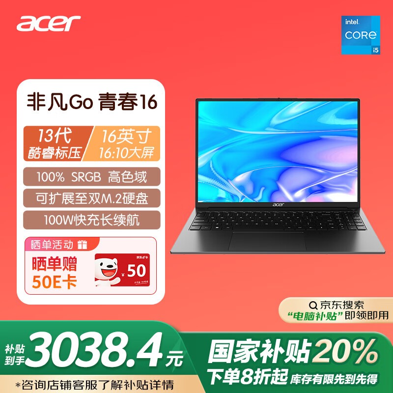 宏碁 非凡Go 青春轻薄笔记本电脑 3799元到手仅需2958元
