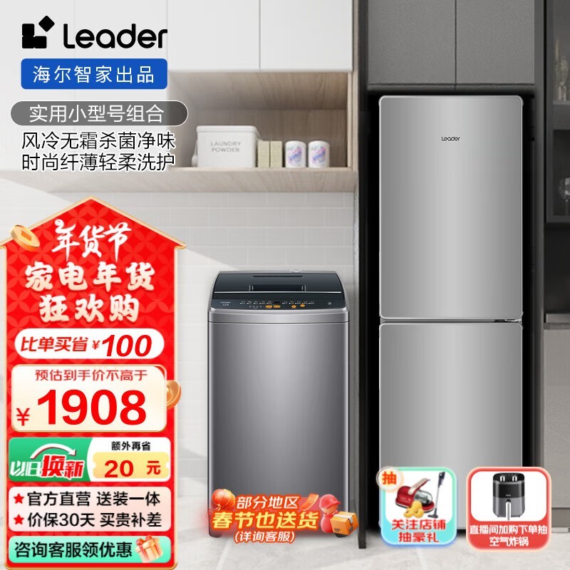 海尔智家190L双开门冰箱+10KG波轮洗衣机 套装1591.9入手