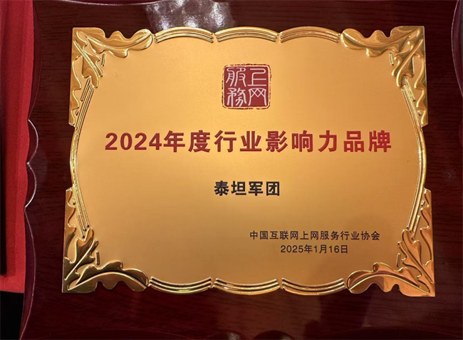 会议上,泰坦军团凭借在行业内的卓越表现,荣获由中国互联网上网服务行业协会颁发的 「2024 年度上网服务行业年度行业影响力品牌」奖项。这一殊荣不仅是对泰坦军团过往成就的高度认可,更是其在行业中深厚底蕴与强大实力的有力见证。
