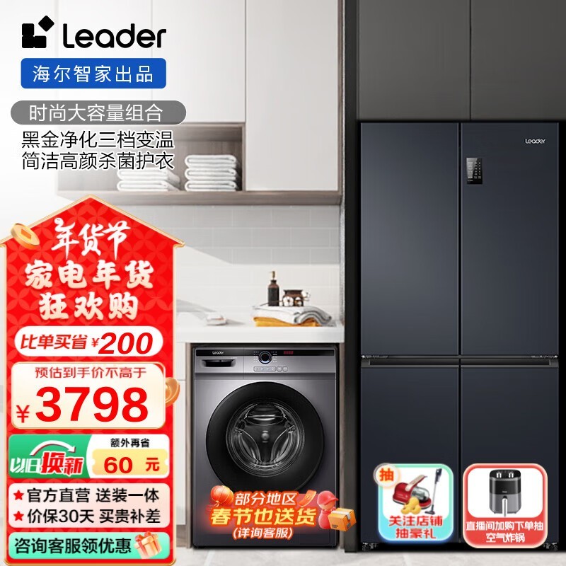买洗衣机送冰箱 领券2871元入手统帅四开门冰箱