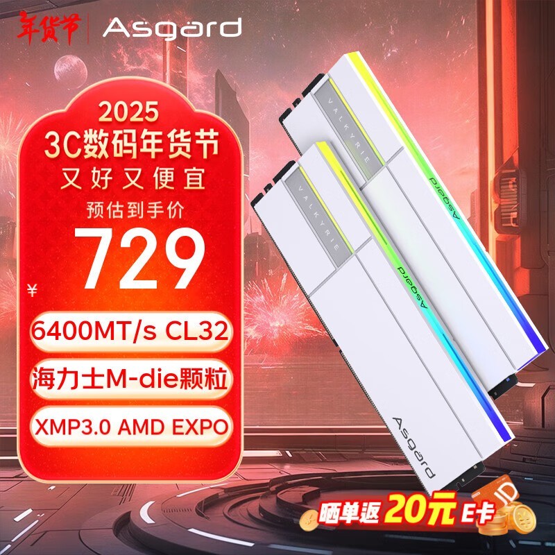 32GB DDR5 6400 台式机内存条仅售724元
